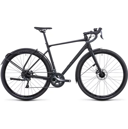 The Nuroad FE takes the performance-enhancing features from the Cube Nuroad Pro FE but with added versatility and comfort, so it’s ready for longer distance riding over tarmac or trail. Ideal for bike packing, touring, trekking and commuting, this bike is engineered with a Cube Superlite Aluminium frame, carbon forks, a Shimano Claris 2×8-Speed groupset and Tektro mechanical disc brakes. And it rolls fast and stable upon Shimano hubs and Cube GR 2.3 Disc rims wrapped in high-grip Schwalbe G-One Allround tyres.