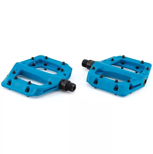 These mountain bike (MTB) flat pedals feature a super low-profile with a lightweight nylon platform that delivers fantastic grip in all riding conditions. Weighing in at less than 300g and equipped with ten pins on each side, they’re a great choice for trail riders who want tough components without adding any unnecessary weight to their ride.